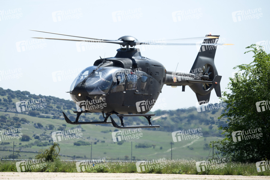 Militärhubschrauber bei der Zeremonie der Übergabe der Nationalflagge an die ACAVIET (Luftfahrtakademie der Armee) in der Helipuerto Base Coronel Mate. Colmenar Viejo, 07.05.2021