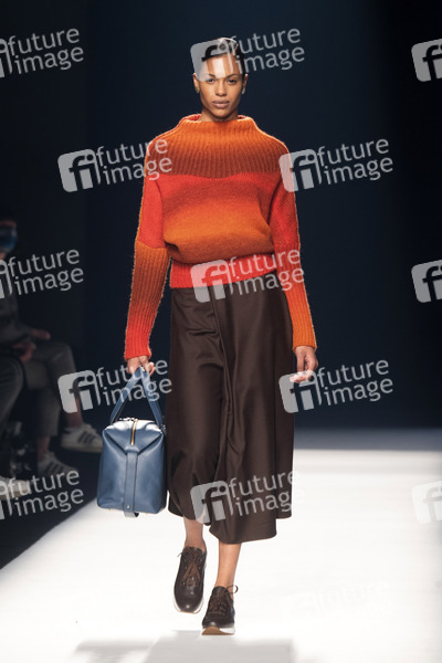 Model bei der Angel Schlesser Fashion Show auf der 73. Mercedes-Benz Fashion Week Madrid unter Einhaltung aller Corona-Regeln auf dem Messegelände Ifema. Madrid, 10.04.2021