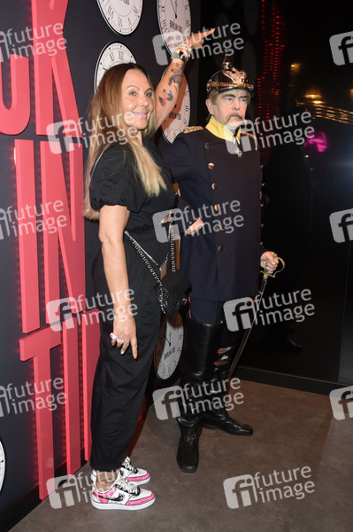 Natascha Ochsenknecht mit Otto von Bismarck Wachsfigur bei der Eröffnung der Ausstellung 'Berlin 100' im Madame Tussauds. Berlin, 15.07.2021