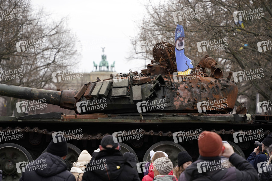 Politik, Krieg, Russland, Ukraine, Jahrestag, Protest, Protestaktion, Frieden, Demonstration, PK, T-72 B1 Panzer, Russian Tank, Panzerwrack