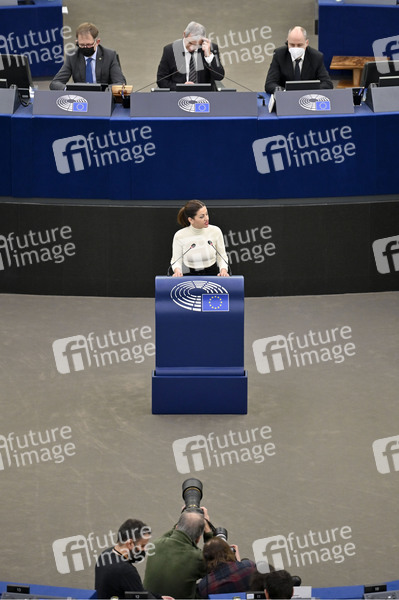 Sira Rego bei der Präsidentschaftskandidaten-Präsentation im Plenarsaal des Europäischen Parlaments. Straßburg, 18.01.2022