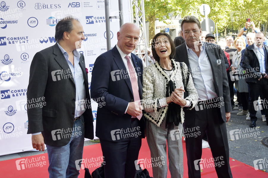 Oliver Marlon Juhnke, Kai Wegner, Susanne Juhnke und Peter Wolf bei der offiziellen Einweihung des Harald-Juhnke-Platzes am Kurfürstendamm. Berlin, 29.09.2025