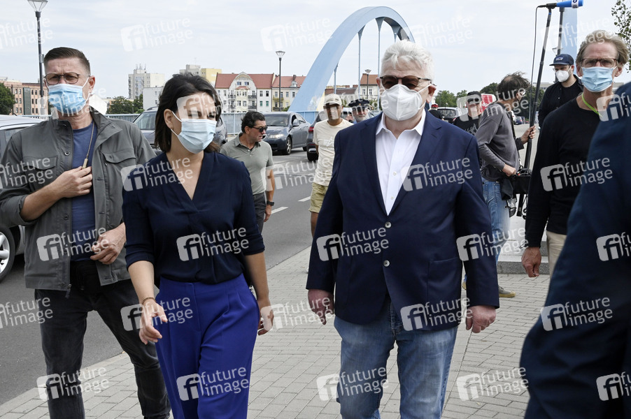 Annalena Baerbock und Joschka Fischer auf der Stadtbrücke in Frankfurt (Oder) im Rahmen ihrer Wahlkampftour. Frankfurt (Oder), 16.08.2021