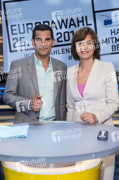 Moderator, Moderatorin, Unterhaltung, Entertainment, Politik, Talk, Show, TV, Fernsehen, Europawahl, Kultur