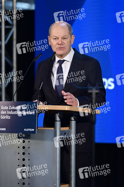 Olaf Scholz beim Besuch des Alstom-Standort in Görlitz. Vertreter von Alstom und KNDS informieren über die Zukunft des Standortes. Das Unternehmen Alstom, das für die Produktion von Schienenfahrzeugen bekannt ist, wird sich bis 2026 aus Görlitz zurückziehen. Der Rüstungskonzern KNDS wird als neuer Investor den Standort übernehmen. Die Übernahme schafft eine nachhaltige Perspektive für den Standort und einen Großteil der Beschäftigten. Görlitz, 05.02.2025