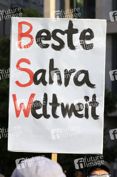 Plakat bei einer Wahlkampfveranstaltung des Bündnis Sahra Wagenknecht - Vernunft und Gerechtigkeit (BSW) auf dem Richard-Wagner-Platz. Leipzig, 04.06.2024