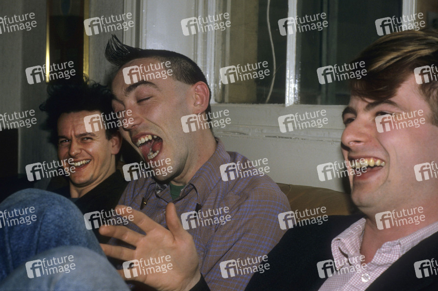 Kev Hopper, Mick Lynch und Chris Salmon von Stump bei einem Pressetermin im Büro ihrer Plattenfirma. London, 21.05.1987