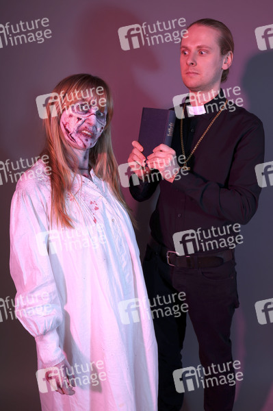 Cosplay, Cosplayer, Bodypainting, Body-Painting, Make-up, Latexappliaktionen, Maskenbildnerei, Körperkunst, Körperfarben, Projekt Farbkörper, Farbe, Bemalung, Kunst, Malerei, Priester, vom Teufel besessen, Exorzismuns, Religion, Kirche, Teufelsaustreibung, Kruzifix, Bibel, priest, possessed by the devil, exorcism, religion, church, crucifix, bible, body art, project color body, colors, The Exorcist