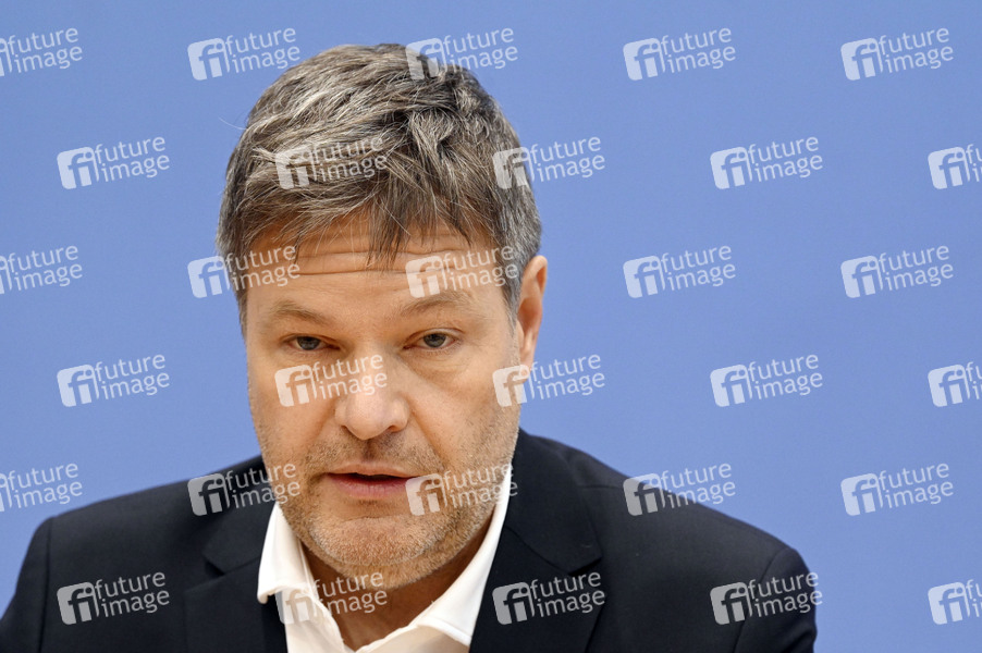Robert Habeck bei der Pressekonferenz zur Eröffnungsbilanz Klimaschutz im Haus der Bundespressekonferenz. Berlin, 11.01.2022