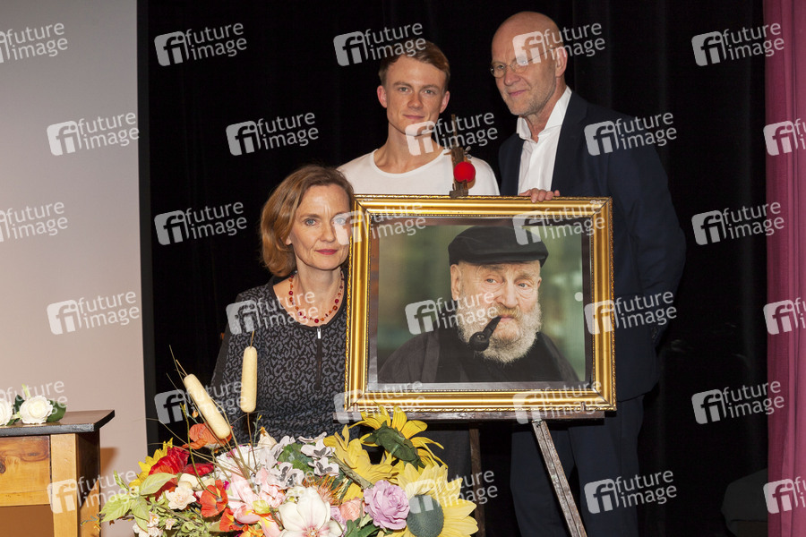 Josephine Hoppe (Tochter), Oscar Hoppe (Enkel) und Dirk Neumann (Schwiegersohn) bei der Gedenkveranstaltung für Rolf Hoppe im Hoftheater in Dresden Weissig. Dresden, 09.02.2019