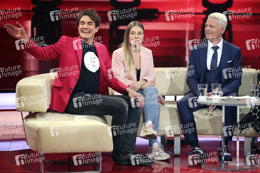 Matze Knop, Bianca Claßen und Guido Cantz bei der Aufzeichnung der ARD-Unterhaltungsshow 'Verstehen Sie Spass?' in den Bavaria Studios. Geiselgasteig bei München, 03.04.2019