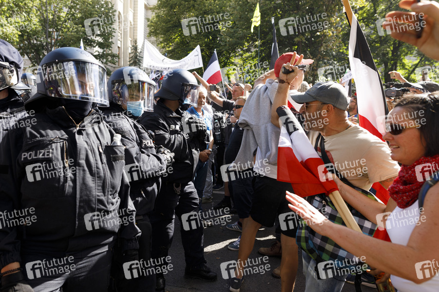 Polizei, Friedensvertrag, Großdemonstration, Coronapolitik-Gegner, Kundgebung, Protest, Demo, Demonstration, Demonstranten, Querdenken 711, Grundrechte, Coronakrise, Coronaregeln, Abstandsregeln, Hygienevorschriften, Verschwörungstheorien, Coronaleugner, Beschränkung, Beschränkungen, Bevölkerungsschutz, Corona, Coronaepidemie, Coronaerkrankung, Coronainfektion, Coronakrise, Coronavirus, Corona-Virus, CoViD19, Covid-19, Demo, Demonstrant, Demonstranten, Demonstration, Eindämmung, Eindämmungsmaßnahmen, Einschränkung, Einschränkung von Grundrechten, Einschränkungen, Epidemie, Krise, Kundgebung, Kundgebungen, Maßnahme, Pandemie, Protestaktion, Protestdemo, Protestdemonstration, Sars-CoV-2, Schutzmaßnahmen, Transparent, Versammlung, Verschwörungen