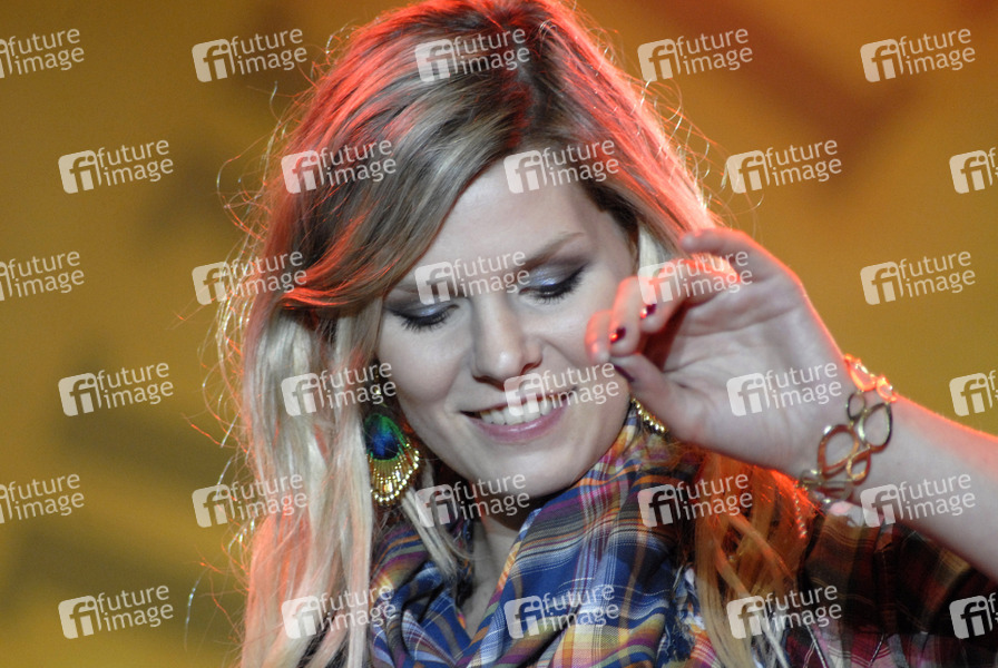 Musiker des Buena Vista Social Club mit Sängerin aus Deutschland beim Konzert 'Rhytms del Mundo - Cubano Aleman' im Sommergarten der IFA 2008 (Internationale Funkausstellung in Berlin)