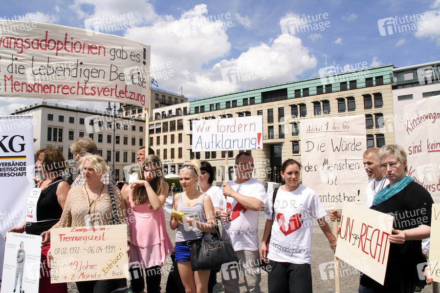 Eltern und Kinder, die in der DDR von Zwangsadoption betroffen waren, suchen ihre Angehörigen. Jugendämter und Behörden lassen sie im Stich. Aus diesem Grunde veranstaltete der Verein 'Zwangsadoption' gemeinsam mit dem UOGK (Union der Opferverbände Kommunistischer Gewaltherrschaft e.V.) eine Protestveranstaltung.Berlin, 25.05.2014