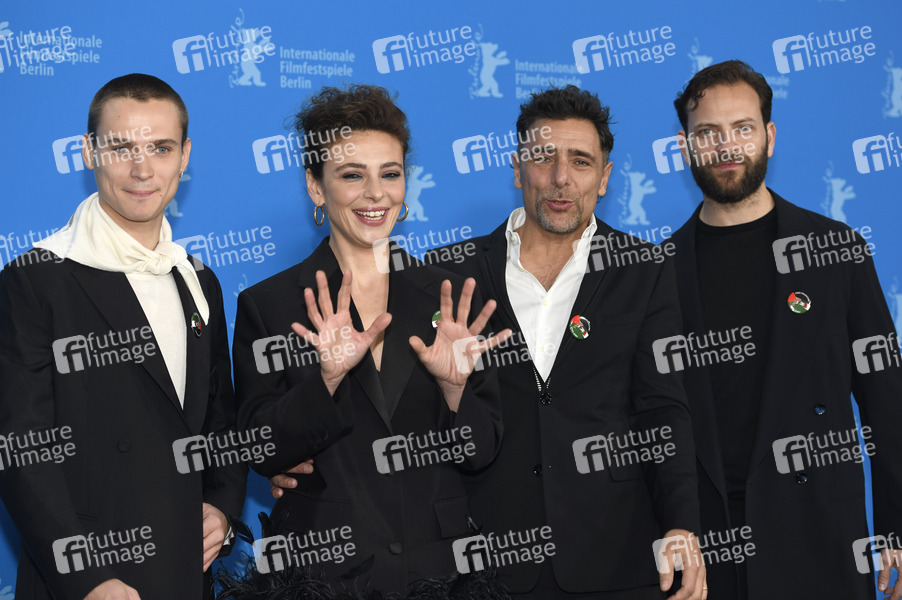 Saul Nanni, Jasmine Trinca, Adriano Giannini und Alessandro Borghi beim Photocall zur Miniserie 'Supersex' auf der Berlinale 2024 / 74. Internationale Filmfestspiele Berlin im Hotel Grand Hyatt. Berlin, 22.02.2024