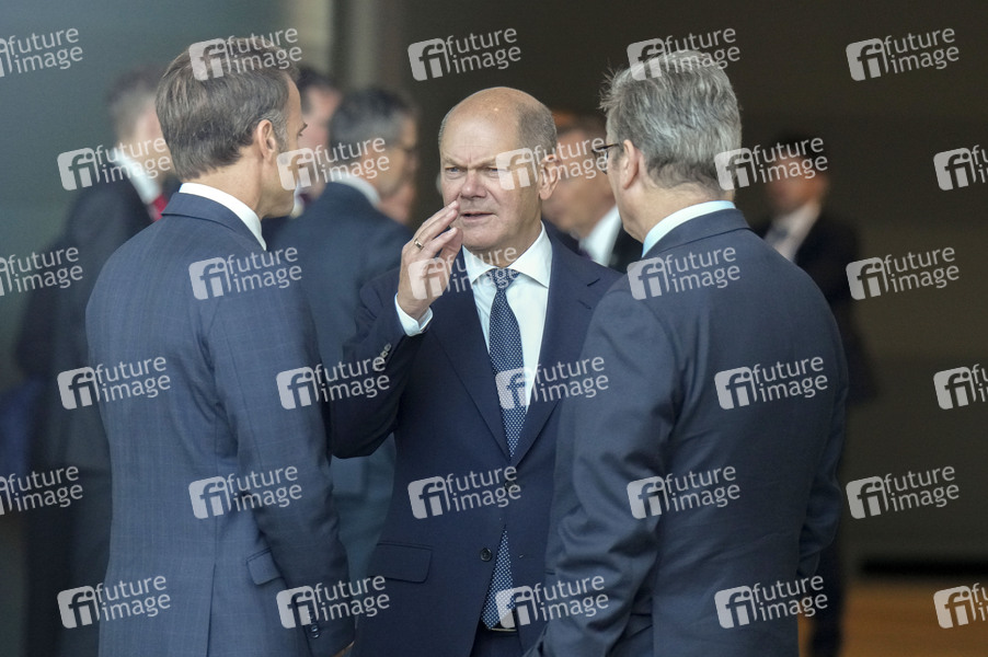 Emmanuel Macron, Olaf Scholz und Keir Starmer beim QUAD Treffen im Bundeskanzleramt. Berlin, 18.10.2024