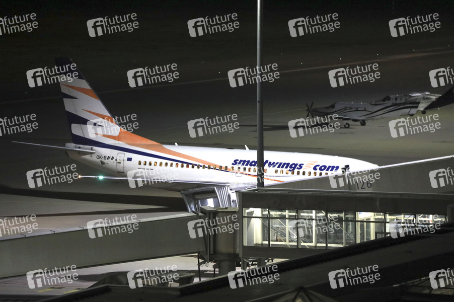 Eine Boeing 737 der Fluggesellschaft Smartwings landet nach 21 Uhr auf dem Flughafen Leipzig/Halle. Mit der Maschine sind auch ehemalige Ortskräfte deutscher Institutionen aus Afghanistan in Leipzig gelandet. Per Flugzeug werden ehemalige Ortskräfte sowie besonders gefährdete Menschen, etwa Menschenrechtsanwälte oder Frauenrechtlerinnen, nach Deutschland geholt. Leipzig, 16.04.2025