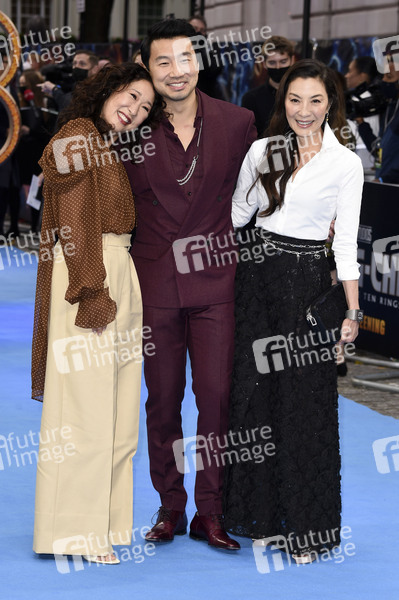 Sandra Oh, Simu Liu und Michelle Yeoh bei der Premiere des Kinofilms 'Shang-Chi and the Legend of the Ten Rings' im Curzon Mayfair Cinema. London, 26.08.2021