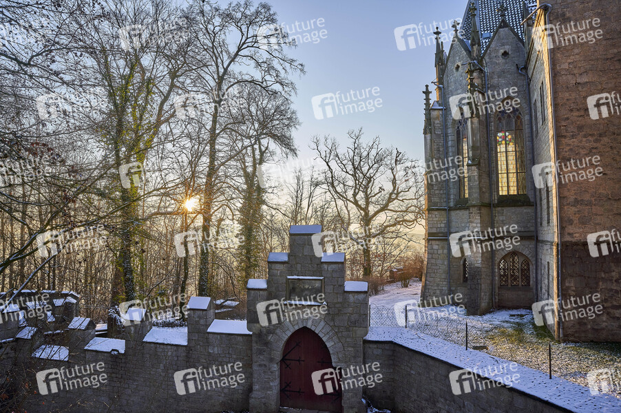 offizieller Wohnsitz der Prinzen von Hannover, Welfen, Bauzeit 1857-1867, Ernst August von Hannover, Neugotik, Architekt: Conrad Wilhelm Hase, Pattensen, Schnee, Winter, Winterlandschaft, Berg, Burg, Ausflugsziel, Sehenswürdigkeit