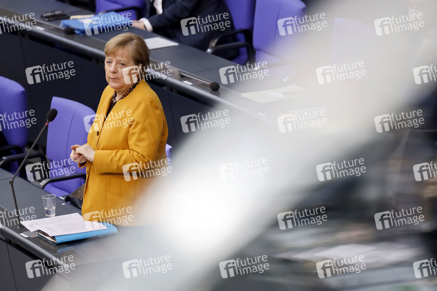 Angela Merkel in der 217. Sitzung des Deutschen Bundestages im Reichstagsgebäude. Berlin, 24.03.2021