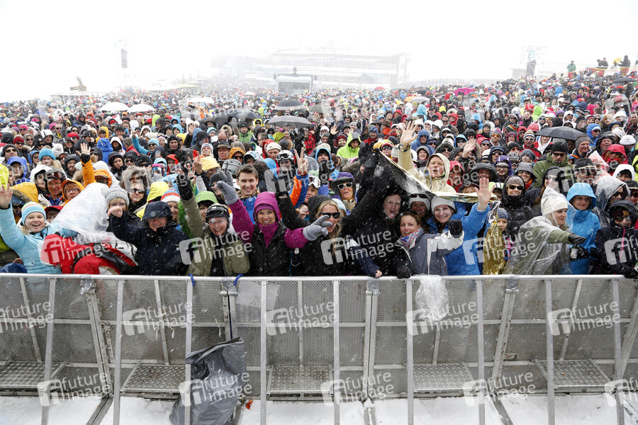 Robbie Williams Fansbeim 'Top Of The Mountain Concert' auf der Idalp. Ischgl, 03.05.2014