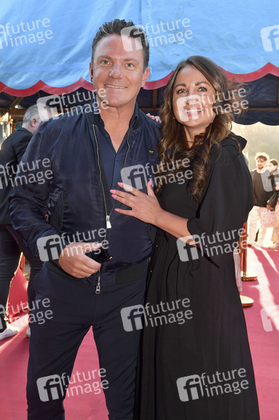 Stefan Mross mit Partnerin Eva Luginger bei der Premiere des Circus Krone Tourneeprogramms 'Farbenspiel - Gold Edition' im Circus Krone Zelt auf der Theresienwiese. München, 10.04.2025