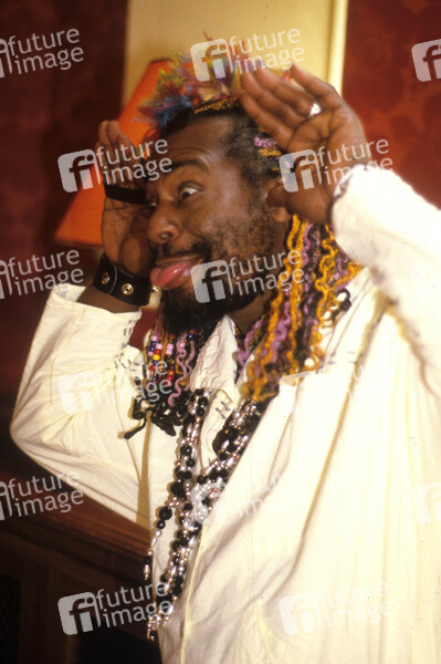 George Clinton von Dolby's Cube bei einem Pressetermin im Belfry Club. London, 04.07.1985