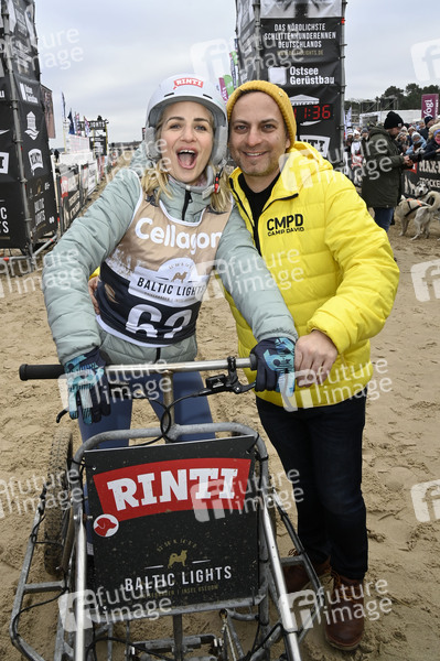 Susan Sideropoulos mit Ehemann Jakob Shtizberg beim 9. Baltic Lights 2025 Charity-Schlittenhunderennen zu Gunsten der Welthungerhilfe zwischen der Seebrücke Ahlbeck und der Seebrücke Heringsdorf. Heringsdorf, 01.03.2025