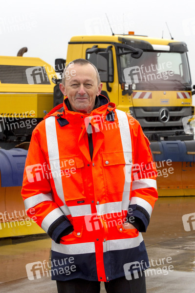 Johan Vanneste beim Presse-Fototermin zum Winter-Fuhrpark des Flughafens Köln Bonn Airport. Köln, 11.12.2019
