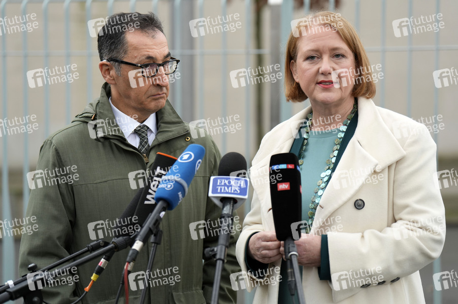 Cem Özdemir und Lisa Paus beim Pressestatement über Bildungs- und Betreuungsangebote für Grundschulkinder sowie zum Engagementbericht vor dem Bundeskanzleramt. Berlin, 04.12.2024