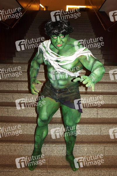 Comics-Bodypainting und Photoshooting mit Olimp-Model Horst und Model Lena im Ruhr Congress Centrum, Bochum. Body Paint Künstler: Jörg Düsterwald