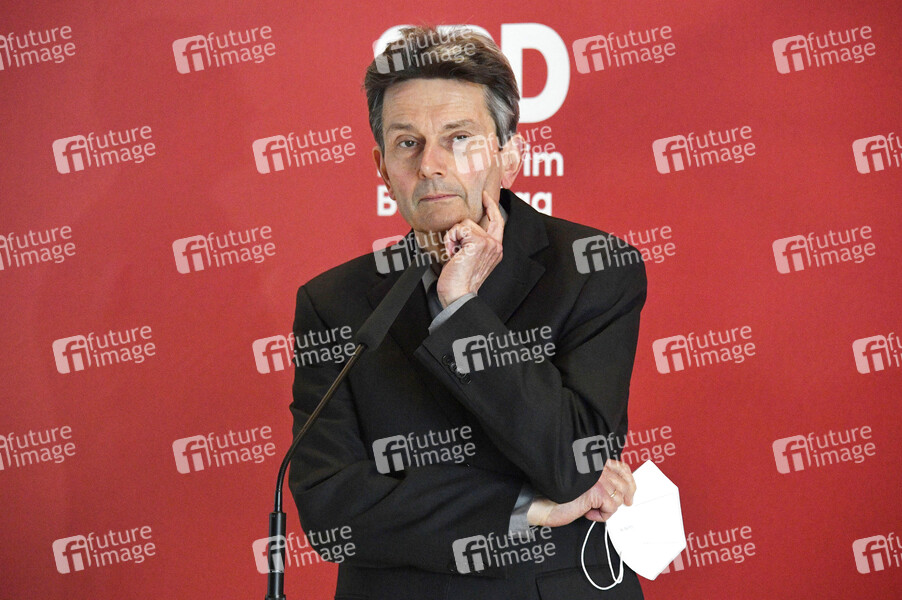 Rolf Mützenich bei einem Pressestatement der SPD vor der Fraktionssitzung auf der Fraktionsebene im Reichstagsgebäude. Berlin, 13.04.2021