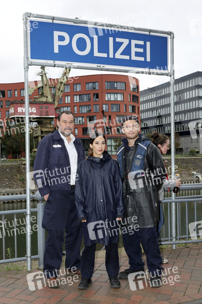 Markus John, Yasemin Cetinkaya und Niklas Osterloh beim Fototermin am Set der ARD TV-Serie 'WaPo Duisburg' im Duisburger Innenhafen. Duisburg, 20.09.2022