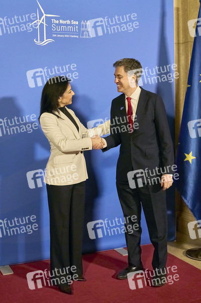 Katherina Reiche (Bundesministerin für Wirtschaft und Energie) und Ed Miliband (Minister für Energiesicherheit und NetZero, Vereinigtes Königreich) beim 3. internationalen Nordsee-Gipfel 2026 auf Ebene der Regierungschefinnen und -chefs sowie der Energieministerinnen und Energieminister im Rathaus. Ziel des Gipfels ist es, den grenzüberschreitenden Ausbau der Offshore-Windenergie, den Wasserstoffmarkt und zugleich eine leistungsfähige und vernetzte Offshore-Infrastruktur im gesamten Nordseeraum weiter voranzutreiben. Hamburg, 26.01.2026