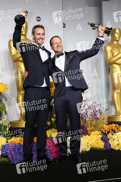 Anders Walter und Kim Magnusson mit Oscars für den besten Kurzfilm 'Helium' bei der Oscar Verleihung 2014 / 86th Academy Awards Preisverleihung im Dolby Theatre, Hollywood. Los Angeles, 02.03.2014