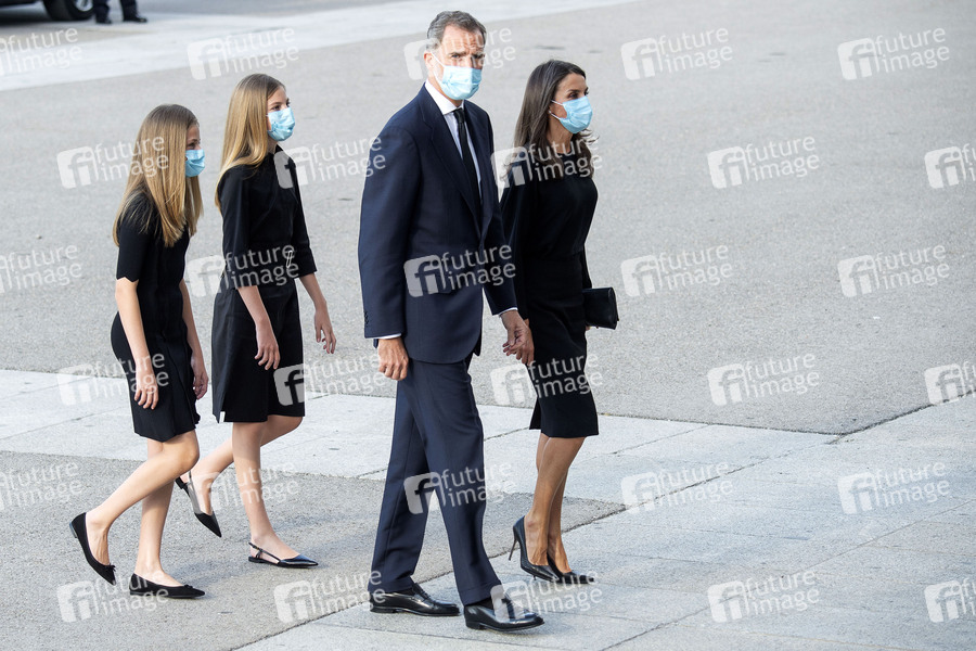 Prinzessin Leonor von Spanien, Prinzessin Sofia von Spanien, König Felipe VI. von Spanien und Königin Letizia von Spanien bei einer Gedenkmesse für die Opfer des Coronavirus COVI-19 in der Almudena-Kathedrale. Madrid, 06.07.2020