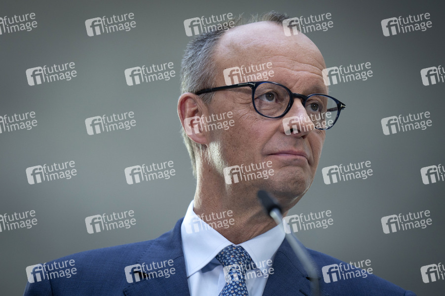 Friedrich Merz bei einer Pressekonferenz nach den Sondierungsgesprächen der Partei- und Fraktionsspitzen von SPD, CDU und CSU im Reichstagsgebäude. Berlin, 08.03.2025