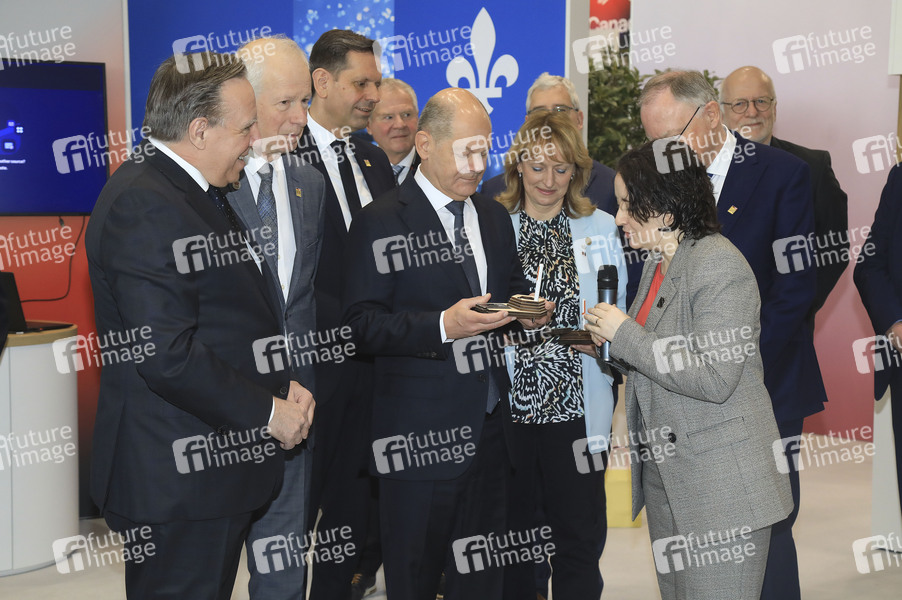 Deutsche Messe AG, Hannover Messe Industrie, Weltleitmesse der Industrie, Industriemesse, Industrieschau, Automatisierung, IT-Sicherheit, KI, Technologie, Wirtschaft, Ausstellung, Fair, Messe, Eröffnung, Opening, Leitmesse, Synergie und Kooperation, Wasserstoff & Brennstoffzellen, CO2-neutrale Produktion, Energizing a Sustainable Industry, Künstliche Intelligenz, Partnerland Kanada, Politiker, Bundeskanzler, Ministerpräsident von Niedersachsen, Premierminister von Quebec
