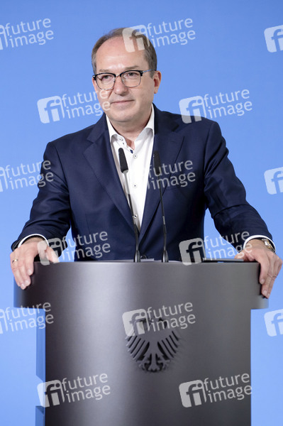Alexander Dobrindt beim Pressestatement zu den Beschlüssen des Bundeskabinetts im Bundesministerium des Innern. Berlin, 23.07.2025