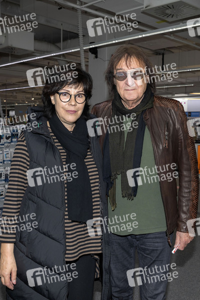 Dieter 'Maschine' Birr mit Ehefrau Sylvia Birr bei einer Autogrammstunde im Medimax. Bautzen, 02.04.2024