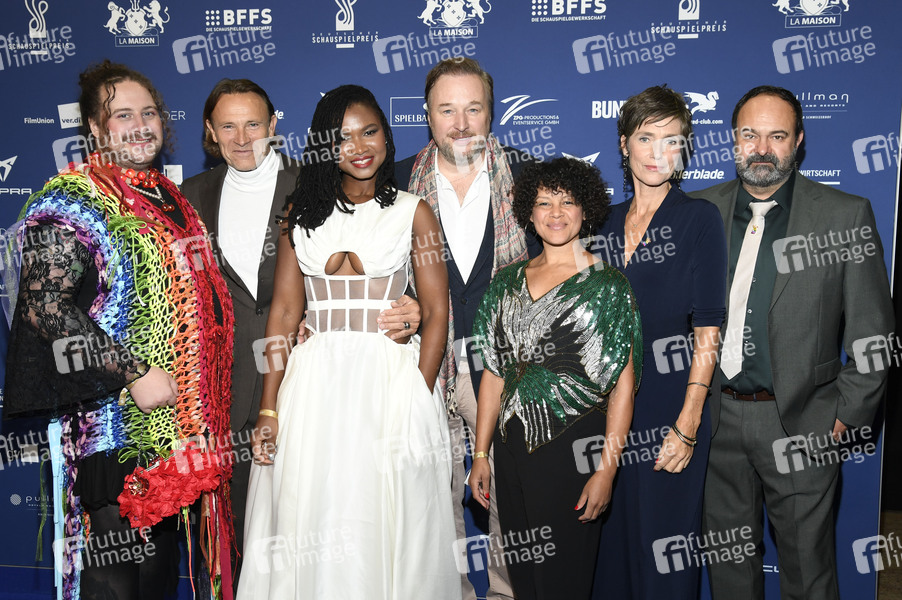 Nicolas Dinkel, Bernhard Bettermann, Victoire Laly, Stephan Grossmann, Daniela Grubert, Julia Bremermann und Tom Keune bei der Verleihung des Deutschen Schauspielpreises 2025 im Hotel Pullman Berlin Schweizerhof. Berlin, 09.10.2025