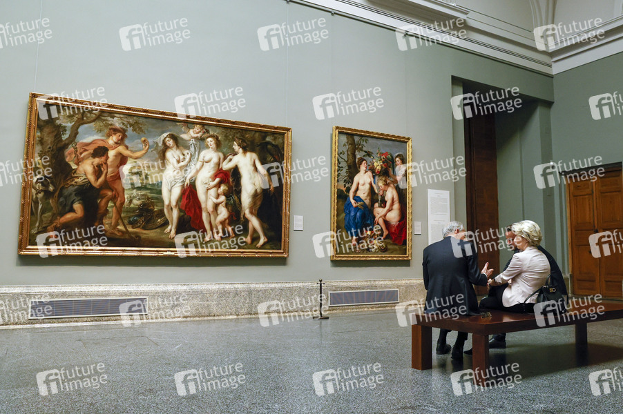 Jonas Gahr Store, Ursula von der Leyen und Xavier Bettel bei der Ankunft zu einem informellen transatlantischen Abendessen der NATO Staats- und Regierungschefs im Prado-Museum. Madrid, 29.06.2022