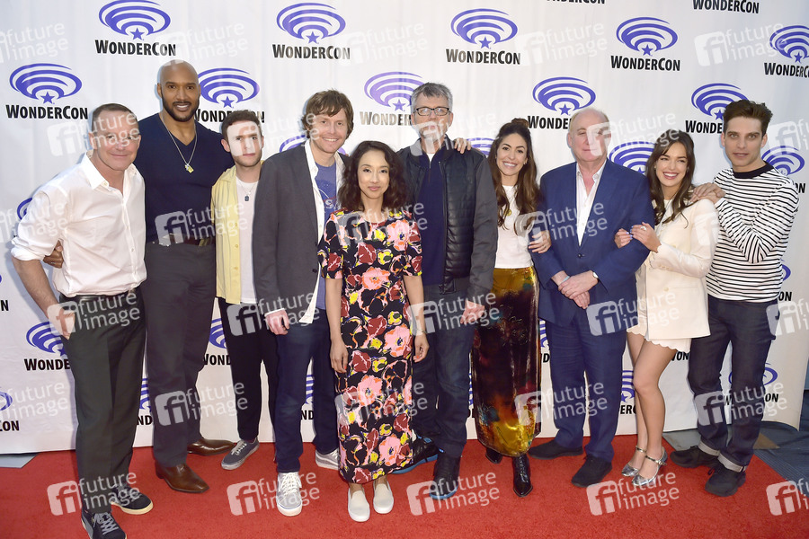 Clark Gregg, Henry Simmons, Iain De Caestecker, Jed Whedan, Maurissa Tancharoen, Barry Josephson, Natalia Cordova-Buckley, Jeph Loeb, Elizabeth Henstridge und Jeff Ward beim Photocall zur AMC TV-Serie 'Marvel's Agents of S.H.I.E.L.D.' auf der WonderCon 2019 im Anaheim Convention Center. Anaheim, 30.03.2019