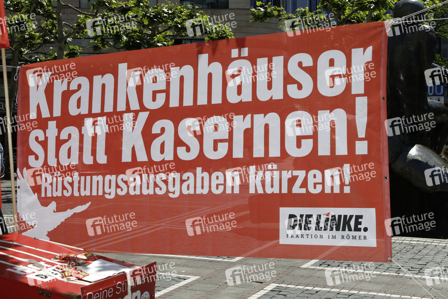 Demonstrationen gegen Corona-Beschränkungen - Infostand der Partei Die Linke zur Coronakrise auf der Zeil vor der St. Katharinenkirche. Frankfurt, 16.05.2020