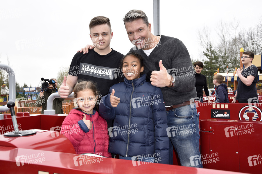 Hardy Krüger jr. mit Sohn Theo und Töchtern Layla und Vinas bei der Eröffnung des neuen Themenbereichs 'Land der Pharanonen' im Legoland Deutschland Resort. Günzburg, 06.04.2019