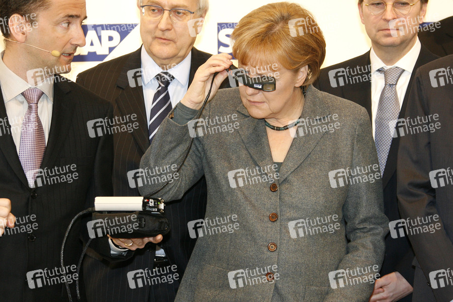 Eröffnungsrundgang von Bundeskanzlerin Merkel und Spaniens Ministerpräsident Zapatero auf der CeBIT 2010 (Centrum der Büro- und Informationstechnik), der weltgrößten Messe für Informations- und Computertechnik auf dem Messegelände in Hannover. AM Messestand von SAP.