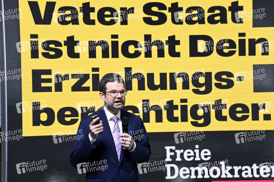 Marco Buschmann bei der Presseskonferenz der FDP zur Kampagnenpräsentation zur Bundestagswahl 2025 im Hans-Dietrich-Genscher-Haus. Berlin, 10.12.2024