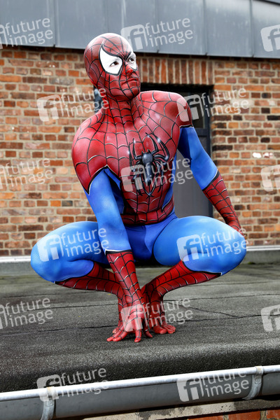 Cosplay, Cosplayer, Bodypainting, Body-Painting, Make-up, Latexappliaktionen, Latexteile, Maskenbildnerei, Maskenbildner, Körperkunst, Körperfarben, Projekt Farbkörper, Farbe, Bemalung, Kunst, Malerei, Spiderman, Comicfigur, Die Spinne, Superheld, Peter Parker, Marvel, Comics, Kultur, superhero, superheroes, body painting, body art, project color body, colors