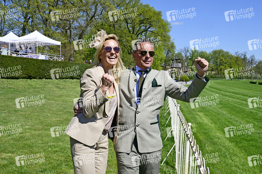 Patrick Graf von Faber-Castell mit Partnerin Sandra-Sophie Trauboth bei der Großen Saisoneröffnung 2025 auf der Rennbahn Hoppegarten. Berlin, 20.04.2025