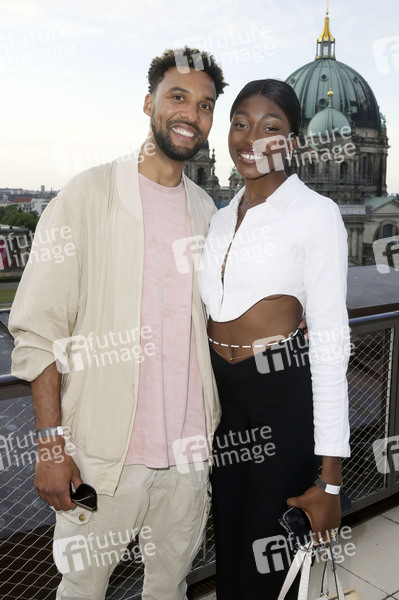 Jonas Kirsch und Toni Dreher-Adenuga beim Berliner Brandstifter Launch Event in der Baret Rooftop Bar auf dem Humboldtforum. Berlin, 31.05.2022